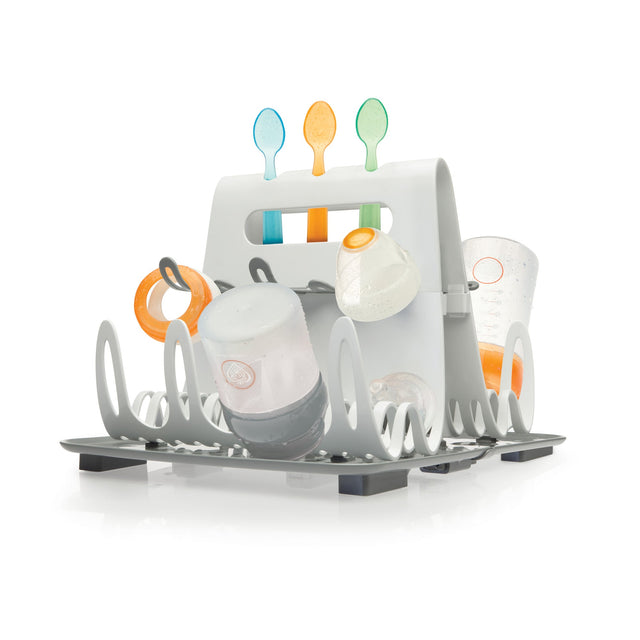 With Baby comes a lot of "stuff." Too much stuff. We get it. All that stuff has to be kept in place to keep from getting misplaced. Every little spoon, nipple, bottle, pacifier, stopper, and lid... keep it together with a drying station that has a place for everything.